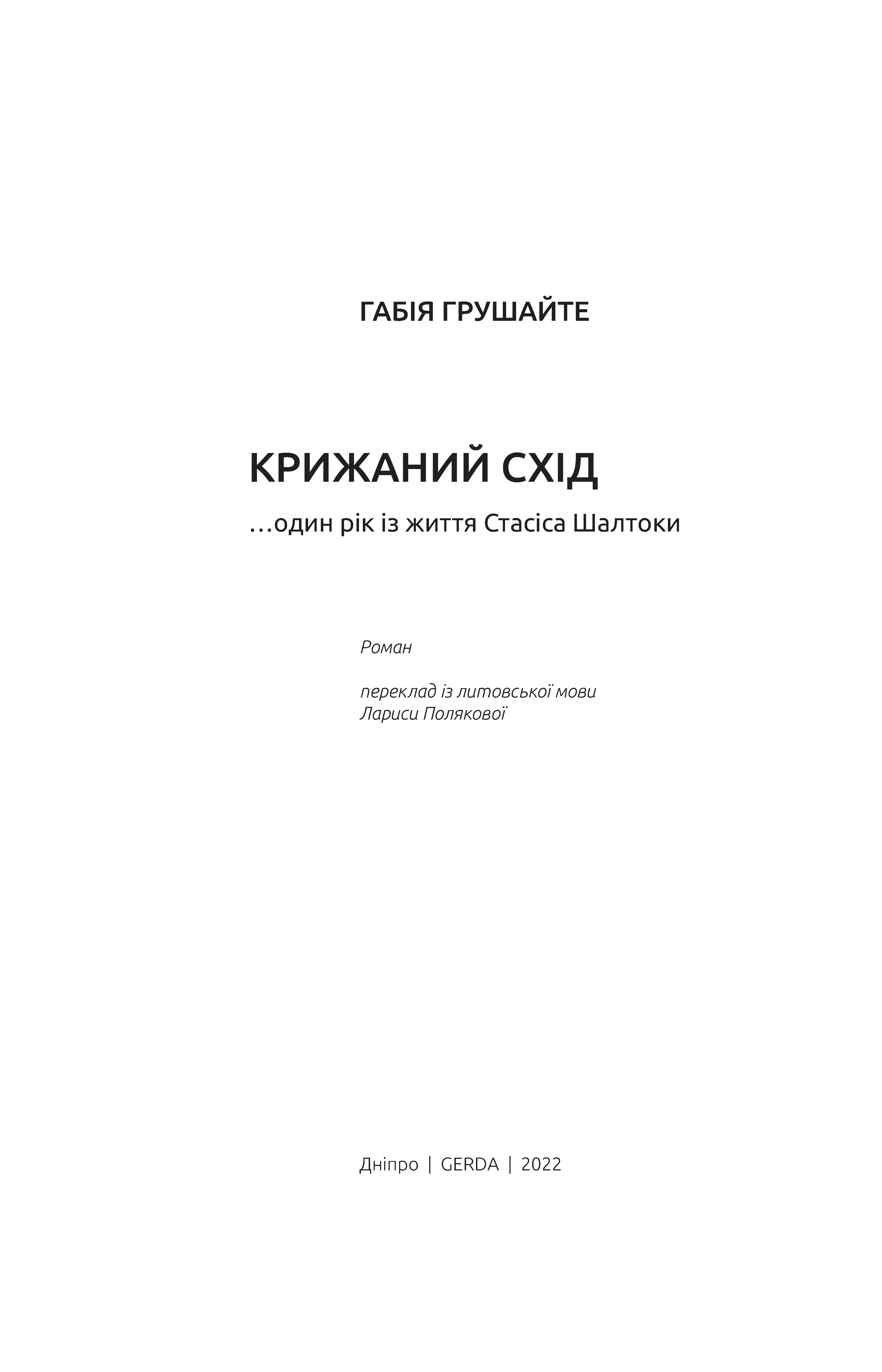 Крижаний схід …один рік із життя Стасіса Шалтоки: роман / переклад із литовської мови Лариси Полякової. – Дніпро: Герда, 2022. – 280 с.
