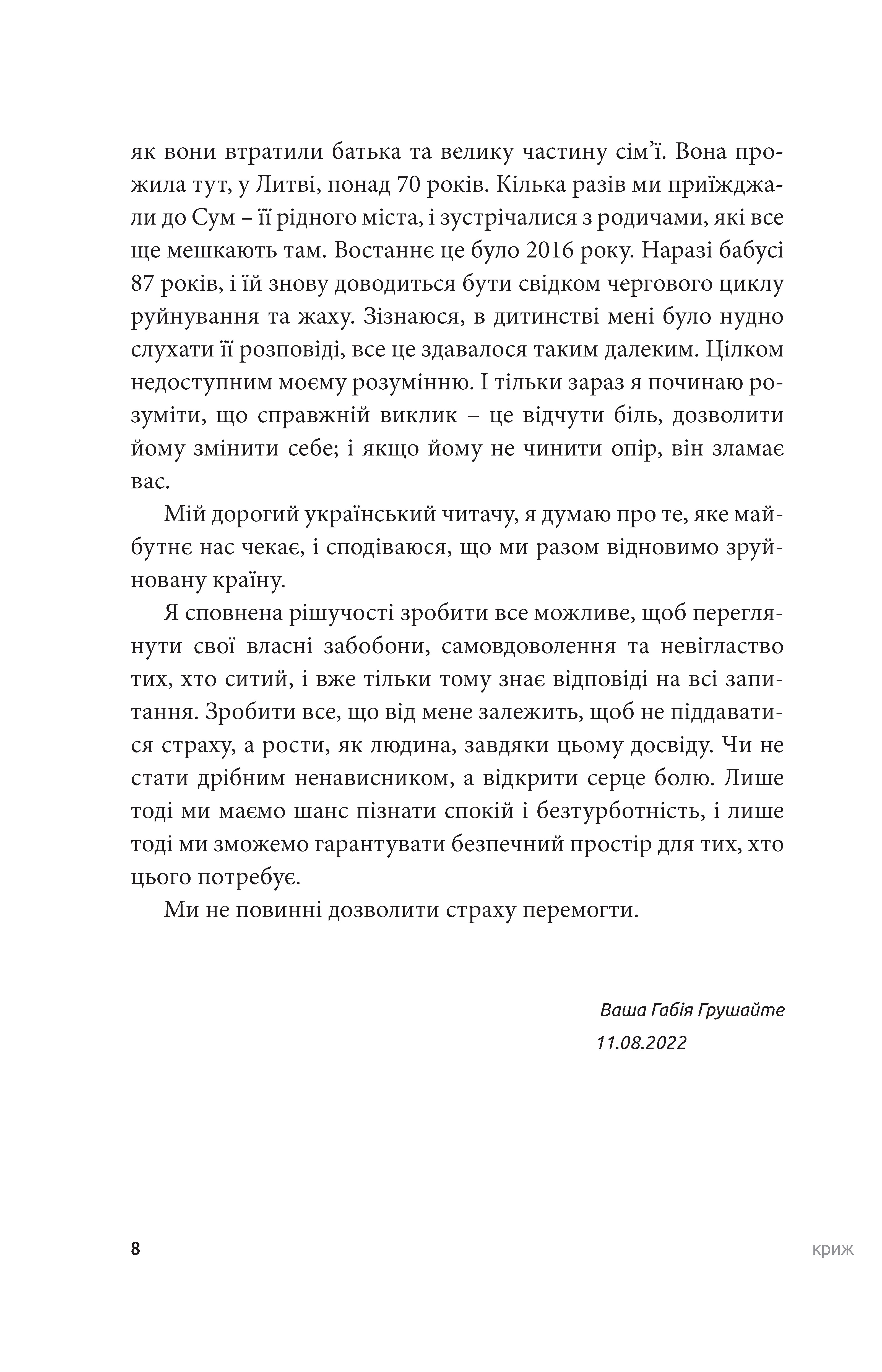 Мій дорогий український читачу, я думаю про те, яке майбутнє нас чекає, і сподіваюся, що ми разом відновимо зруйновану країну.